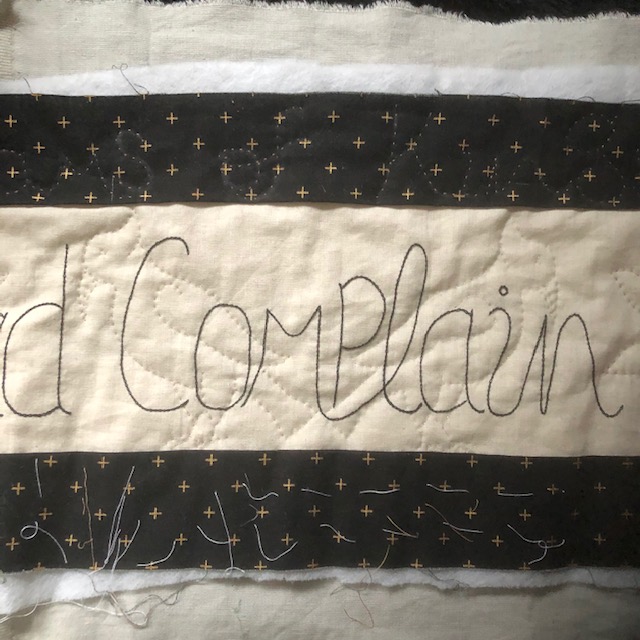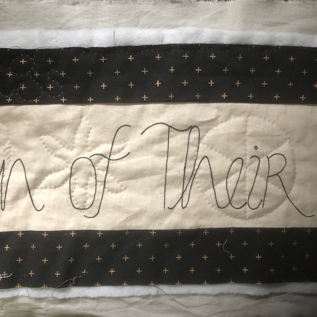 When I started quilting this project I had an uneasy moment when I thought “If I were starting again, I wouldn’t start from here”. But by that stage it was too late to restitch all those chapter titles. And I also reflected on the fact that the Cromwell Trilogy Quilt has its own history – it’s a project started in lockdown. Being able to read Hilary Mantel’s work during lockdown, and finding a way of engaging with it creatively, and stretching my quilting design skills is a privilege.